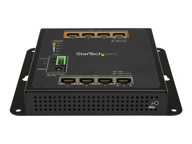 StarTech.com Industrial 8 Port Gigabit PoE Switch, 4 x PoE+ 30W, Power Over Ethernet, Hardened GbE Layer/L2 Managed Switch, Rugged High Power Gigabit Network Switch IP-30/-40C to +75C