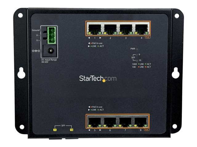 StarTech.com Industriell Gigabit PoE med 8 portar + switch med 2 SFP MSA-platser