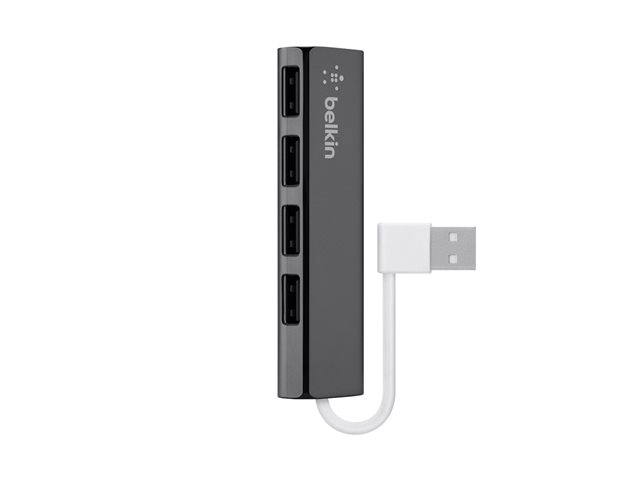 Produktbeskrivning Belkin Ultra-Slim Travel - hubb - 4 portar Typ av enhet Hubb - 4 portar Undertyp USB Portar 4 x USB 2.0 -