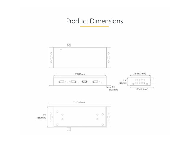 Produktbeskrivning StarTech.com 4-Port Industrial USB 3.0 5Gbps Hub, Rugged USB Hub w/15kV Air/8kV Contact ESD and Surge Protection, DIN/Wall/Desk Mountable USB-A Hub, USB Expansion Hub with Locking Ports - Metal Construction (5G4AINDNP-USB-A-HUB) - hubb - industriell - 4 portar Typ av enhet Hubb - 4 portar Undertyp USB Portar 4 x USB 3.2 Gen 1 Funktioner Robust, 8KV ESD-skydd (kontakturladdning), 15KV ESD-skydd (luftrumsurladdning), stålhus, skruvlås, DFP, inbyggt monteringsfäste Standarder som följs USB 3.2 Gen 1, Battery Charging 1.2 Dimensioner (BxDxH) 17.8 cm x 5.9 cm x 2.3 cm Vikt 280 g Färg Svart Tillverkarens garanti 2 års garanti -