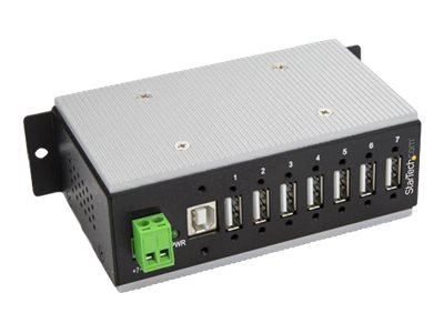 Industriell USB-A-hubb i metall med ESD- och 350 W överspänningsskydd - Utökad driftstemperatur -40 till 85 °C - monterbar på DIN-skena/vägg/skrivbord - USB-expansionshubb - Hubb - 7 x USB 2.0 - DIN-skenmonterbar - Likström - TAA-kompatibel - för P/N: ITB20D3250