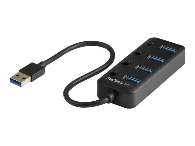 USB-A till 4x USB 3.0 Type-A med individuella switchar för portar - USB 3.1/3.2 Gen. 1 med SuperSpeed 5 Gbps - USB-bussdriven - Bärbar - 25 cm ansluten kabel - Hubb - 4 x USB 3.1 Gen 1 - skrivbordsmodell - för P/N: HB30C4AIB