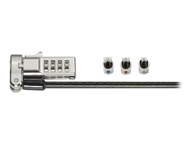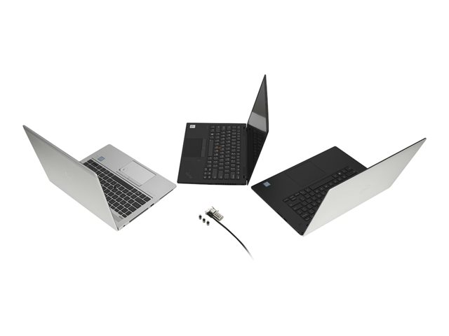 Produktbeskrivning Kensington Universal 3-in-1 Combination Laptop Lock - Resettable - lås för säkerhetskabel Produkttyp Lås för säkerhetskabel Produktmaterial Kolstål, gjuten zink Dimensioner (BxDxH) 5.14 cm x 180 cm x 3.32 cm Längd 1.8 m Vikt 202 g Egenskaper 4-siffrig kod, skärresistent, återställningsbar funktion, stöldskydd Tillverkarens garanti 5 års garanti -