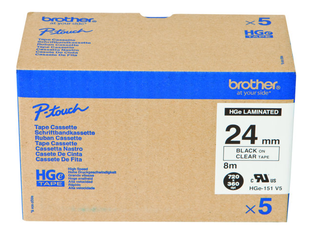 Produktbeskrivning Brother HGE-151V5 - bandlaminat - 5 kassett(er) - Rulle ( 2,4 cm x 8 m) Typ av produkt Bandlaminat Mediastorlek Rulle ( 2,4 cm x 8 m) Mediefärger Svart på klar Medföljande antal 5 kassett(er) Kompatibel med P-Touch PT-9500pc, PT-9800PCN -