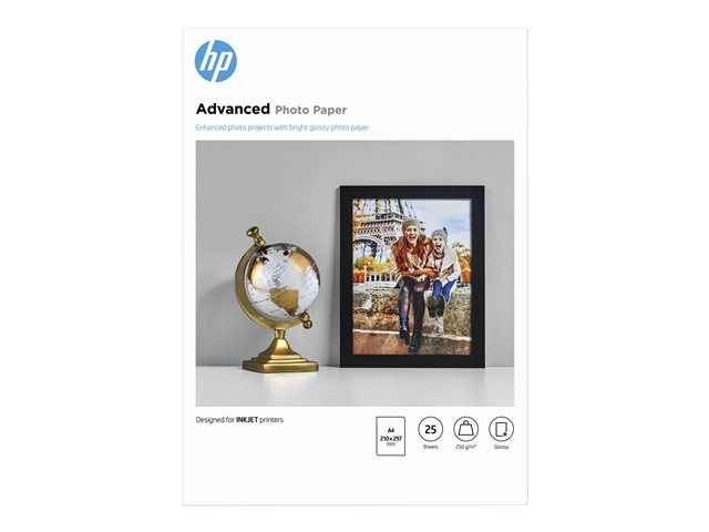 Blank - A4 (210 x 297 mm) - 250 g/m² - 25 ark fotopapper - för ENVY 50XX; Officejet 52XX, 80XX; Photosmart B110, Wireless B110