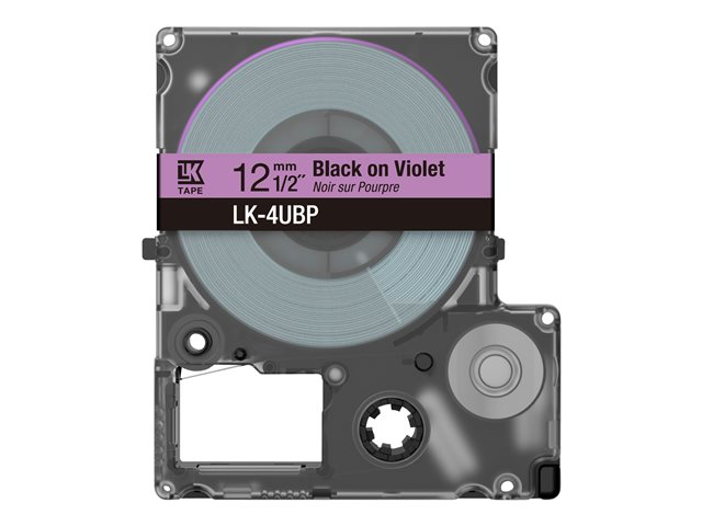 Produktbeskrivning Epson LabelWorks LK-4UBP - bandpatron - 1 kassett(er) - Rulle (1,2 cm x 8 m) Typ av produkt Bandpatron Mediastorlek Rulle (1,2 cm x 8 m) Utskriftsteknik Termisk överföring Mediefärger Svart på lila Medföljande antal 1 kassett(er) Förpackningstyp Hängande låda Kompatibel med LabelWorks LW-C410, LW-C610 -