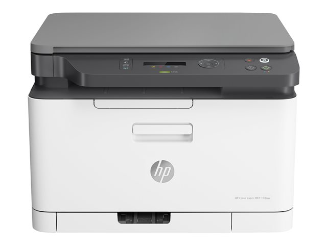 Produktbeskrivning HP Color Laser MFP 178nw - multifunktionsskrivare - färg Typ av enhet Multifunktionsskrivare Lokalisering Engelska, tyska, franska, italienska, spanska / Europa Utskriftsteknik Laser (färg) Driftscykel per månad (max) 20000 sidor Rekommenderad månatlig volym 100 - 500 sidor Max kopieringshastighet Upp till 18 sidor/minut (mono)/upp till 4 sidor/minut (färg) Max kopieringsupplösning Upp till 600 x 600 dpi (mono)/upp till 600 x 600 dpi (färg) Max utskriftshastighet Upp till 18 sidor/minut (mono)/upp till 4 sidor/minut (färg) Max utskriftsupplösning Upp till 600 x 600 dpi (mono)/upp till 600 x 600 dpi (färg) Skanning 600 x 600 dpi Originalstorlek A4 (210 x 297 mm) (max) Originaltyp Ark Dokumentmatarens kapacitet 40 ark Mediastorlek 76 x 148.5 mm (min) - 216 x 356 mm (max) Mediatyp Etiketter, returpapper, bond paper, tjockt papper, extra tjockt papper, lätt papper, glansigt papper, förtryckt papper, färgat papper Standard mediekapacitet 150 ark Utmatningsfackens kapacitet 50 ark Anslutningsmöjlighet Ja Gränssnitt USB 2.0, LAN, Wi-Fi(n) Kontorsmaskinfunktioner Trådlös direktutskrivning, AirPrint-klar, Mopria-certifierad, mobil utskrift, skanna till PC, Google Cloud Print Strömtillförsel AC 230 V (50/60Hz) Dimensioner (BxDxH) 40.6 cm x 36.3 cm x 28.87 cm Vikt 12.94 kg Miljöstandarder ENERGY STAR-godkänd, Blue Angel Tillverkarens garanti 1 års garanti -