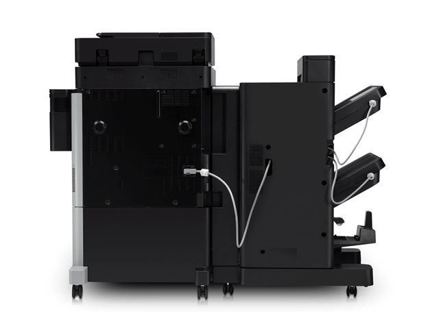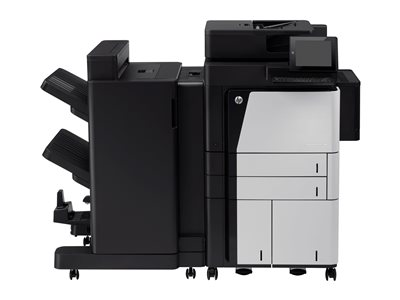 Produktbeskrivning HP LaserJet Enterprise Flow MFP M830z - multifunktionsskrivare - svartvit Typ av enhet Multifunktionsskrivare Faxtyp Vanligt papper Lokalisering Engelska, tyska, franska, italienska, spanska / Europa Utskriftsteknik Laser (monokrom) Driftscykel per månad (max) 300000 sidor Rekommenderad månatlig volym 15 000 - 50 000 sidor Max kopieringshastighet Upp till 56 sidor/minut Max utskriftshastighet Upp till 56 sidor/minut Max utskriftsupplösning Upp till 1200 dpi Max faxöverföringshastighet 33.6 Kbps Faxupplösningar 300 x 300 dpi, 200 x 100 dpi Skanning 600 dpi Originalstorlek A3/Ledger (297 x 432 mm) (max) Dokumentmatarens kapacitet 100 ark Mediastorlek 98 x 191 mm (min) - 312 x 470 mm (max) Mediatyp OH-film, kuvert, vanligt papper, kort, etiketter, returpapper, bond paper, kortlager Standard mediekapacitet 1100 ark Utmatningsfackens kapacitet 3000 ark Arksamlare Tillval Häftapparat Tillval Inbindningsfunktion Tillval Automatisk duplex Ja (kopiering) Ja (utskrift) Ja (skannar) Anslutningsmöjlighet Ja Gränssnitt USB 2.0, Gigabit LAN, USB-värd AirPrint-aktiverad Ja Kontorsmaskinfunktioner Spara till USB Flash-enhet, skanna till e-post, Hard Disk Drive Encryption, spara till nätverksmapp, HP EveryPage, utdragbart tangentbord Strömtillförsel AC 230 V (50/60Hz) Dimensioner (BxDxH) 165 cm x 71.5 cm x 110 cm Vikt 223 kg Miljöstandarder EPEAT Silver, ENERGY STAR-godkänd Tillverkarens garanti 1 års garanti -