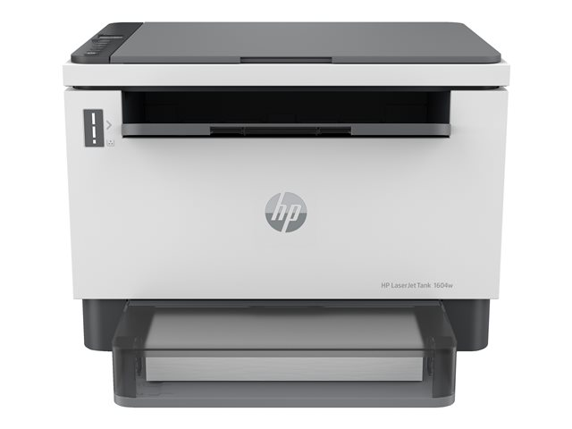 Produktbeskrivning HP LaserJet Tank MFP 1604w - multifunktionsskrivare - svartvit Typ av enhet Multifunktionsskrivare Lokalisering Engelska, tyska, spanska, franska, italienska / Europa Utskriftsteknik Laser (monokrom) Driftscykel per månad (max) 25000 sidor Rekommenderad månatlig volym 250 - 2 500 sidor Max kopieringshastighet Upp till 14 sidor/minut Max kopieringsupplösning Upp till 600 x 600 dpi Max utskriftshastighet Upp till 22 sidor/minut Max utskriftsupplösning Upp till 600 x 600 dpi Skanning 600 x 1200 dpi Originalstorlek 216 x 297 mm (max) Originaltyp Ark Dokumentmatarens kapacitet 40 ark Mediastorlek 102 x 152 mm (min) - Legal (216 x 356 mm), A4 (210 x 297 mm) (max) Mediatyp Vanligt papper, kuvert, etiketter, kortlager, brevkort Standard mediekapacitet 150 ark Max mediekapacitet 150 ark Utmatningsfackens kapacitet 100 ark Anslutningsmöjlighet Ja Gränssnitt USB 2.0, LAN, Wi-Fi(n), Bluetooth LE AirPrint-aktiverad Ja Kontorsmaskinfunktioner Skanna till PDF, skanna till e-post, utskrift från mobila enheter, automatiskt pappersavkännare, HP Auto-On/Auto-Off Technology, Mopria-certifierad Strömtillförsel AC 230 V (50/60Hz) Dimensioner (BxDxH) 36.8 cm x 32.6 cm x 25.5 cm Vikt 7.9 kg Miljöstandarder ENERGY STAR-godkänd, Blue Angel -