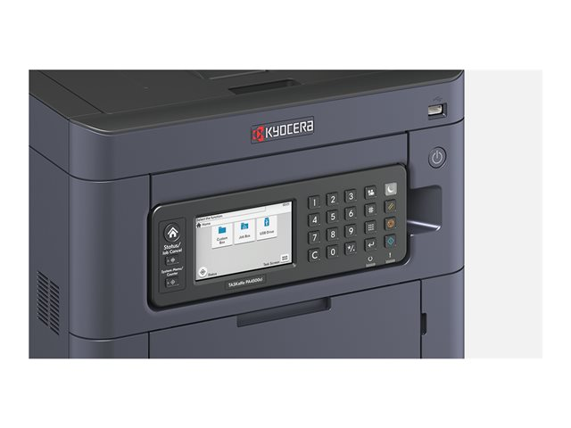 Produktbeskrivning Kyocera TASKalfa PA4500ci - skrivare - färg - laser Typ av skrivare Arbetsgruppsskrivare - laser - färg Vikt 34 kg Bläckpalett (färger) 4-färgs Mediestorleksklass A4/Legal Max. mediestorlek Legal (216 x 356 mm), A4 (210 x 297 mm) Min. mediestorlek (standard) 70 mm x 140 mm Maximal mediestorlek (anpassad) 216 mm x 1220 mm Maxupplösning (svart/vit) 1200 x 1200 dpi Maxupplösning (färg) 1200 x 1200 dpi Automatisk duplex Ja Gränssnitt USB 2.0, Gigabit LAN, USB-värd Processor ARM Cortex-A9 1.2 GHz Installerat flash-minne (max) 1 GB Språksimulering PRESCRIBE, PCL 6, PCL 5C, PCL XL, KPDL3, PostScript 3, PDF, XPS, TIFF, JPEG, URF, PWG, PCLm Streckkoder PDF417 Mediatyp Vanligt papper, kuvert, bond paper, returpapper, OH-film, brevpapper, färgat papper, etikettpapper, hålslaget, tjockt papper Total mediekapacitet 650 ark Mediehantering Flerfunktionsfack för 100 ark, papperskasset för 550 ark Nätverk Printserver Skrivarfunktioner PDF-direktutskrifter, internetutskrifter, e-postutskrifter, WSD-utskrifter, säkra utskrifter IPP över TLS, säker start, integritetskontroll vid körning, stöd för Microsoft Universal Print Strömtillförsel AC 220-240 V Systemkrav Microsoft Windows, Apple MacOS X 10.9 eller senare, Google Chrome OS, Linux Tillverkarens garanti 3 års garanti Dimensioner (BxDxH) 39.4 cm x 53.15 cm x 45.5 cm -
