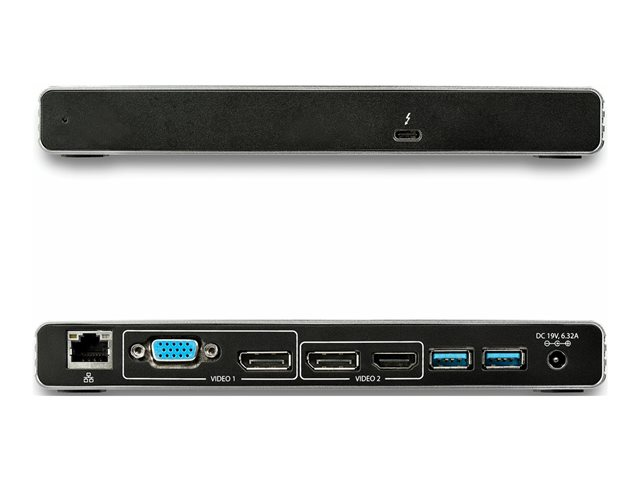 Produktbeskrivning StarTech.com Thunderbolt 3 Dock, Dual 4K 60Hz Monitor TB3 Docking Station with DisplayPort, HDMI & 1080p VGA, 85W Power Delivery & Charging, Gigabit Ethernet, Universal Thunderbolt 3 Dock - TB3 Dock w/ 85W PD (TB3DK2DHVUE) - dockningsstation - Thunderbolt 3 - VGA, HDMI, 2 x DP - 1GbE Typ av produkt Dockningsstation Dockningsgränssnitt Thunderbolt 3 Videogränssnitt VGA, HDMI, 2 x DP Dimensioner (BxDxH) 5.86 cm x 19.6 cm x 2.35 cm Vikt 340 g Färg Grå Lokalisering Storbritannien, Europa Nätverk Gigabit Ethernet Strömtillförsel Strömadapter AC 120/230 V Tillverkarens garanti 3 års garanti -