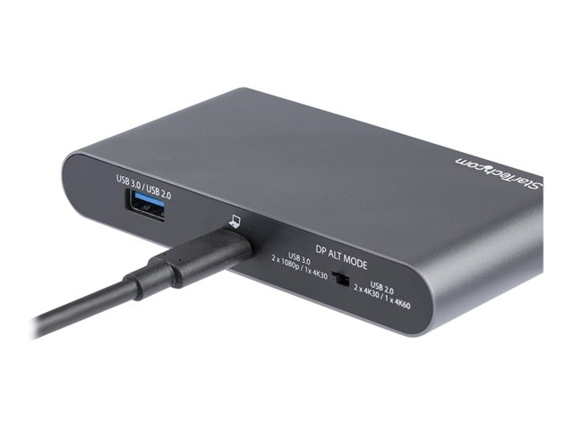 Produktbeskrivning StarTech.com USB C Dock, 4K Dual Monitor DisplayPort, Mini Laptop Docking Station, 100W Power Delivery Passthrough, GbE, 2-Port USB-A Hub, USB Type-C Multiport Adapter 3.3' Cable, Dual DP - Portable USB-C Dock (DK30C2DAGPD) - dockningsstation - USB-C - 2 x DP - 1GbE Typ av produkt Dockningsstation Dockningsgränssnitt USB-C Videogränssnitt 2 x DP Dimensioner (BxDxH) 6 cm x 12 cm x 1.18 cm Vikt 200 g Färg Svart Nätverk Gigabit Ethernet Tillverkarens garanti 3 års garanti Designat för P/N: ARMBARDUO, ARMBARDUOV, ARMDUAL, ARMDUAL30, ARMDUALV, ARMSLIMDUO -