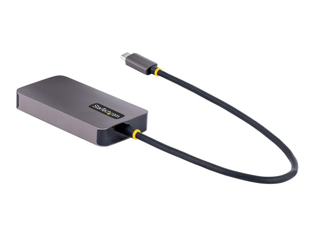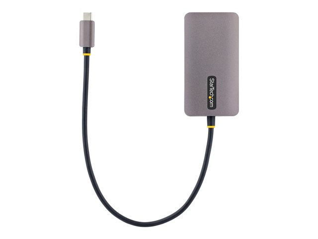 Produktbeskrivning StarTech.com USB C Video Adapter, USB C to HDMI DVI VGA Adapter, Up to 4K 60Hz, Aluminum, Multiport Video Display Adapter for Laptops, Thunderbolt 3/4 Compatible, USB Type C Monitor Adapter - USB C Travel Adapter (118-USBC-HDMI-VGADVI) - dockningsstation - USB-C - VGA, DVI, HDMI Typ av produkt Dockningsstation Dockningsgränssnitt USB-C Videogränssnitt VGA, DVI, HDMI Dimensioner (BxDxH) 4.5 cm x 8.5 cm x 1.4 cm Vikt 73 g Färg Grå Tillverkarens garanti 3 års garanti -