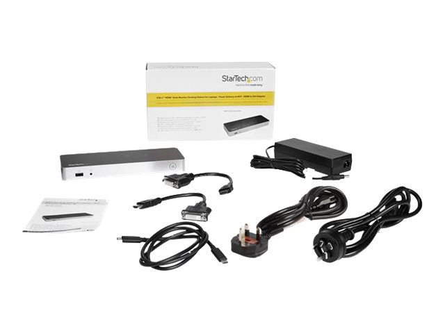 Produktbeskrivning StarTech.com USB-C-docka med dubbla skärmar och MST - 5x USB 3.0-portar - dockningsstation - USB-C / Thunderbolt 3 - 2 x HDMI - 1GbE Typ av produkt Dockningsstation Dockningsgränssnitt USB-C / Thunderbolt 3 Videogränssnitt 2 x HDMI Dimensioner (BxDxH) 8 cm x 22 cm x 2.8 cm Vikt 133 g Färg Svart Lokalisering Storbritannien, Europa Nätverk Gigabit Ethernet Strömtillförsel Strömadapter AC 120/230 V 60 Watt Effekt Tillverkarens garanti 3 års garanti -