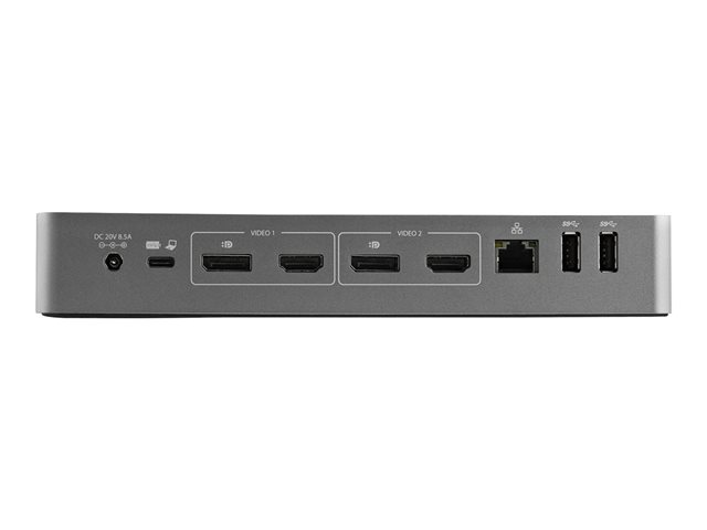 Produktbeskrivning StarTech.com Universell dockningsstation för bärbara datorer med två 4K-bildskärmar - USB-C/USB 3.0 - 100W PD - dockningsstation - USB-C - 2 x HDMI, 2 x DP - 1GbE Typ av produkt Dockningsstation Dockningsgränssnitt USB-C Videogränssnitt 2 x HDMI, 2 x DP Dimensioner (BxDxH) 22 cm x 8 cm x 3 cm Vikt 280 g Färg Svart, rymdgrå Lokalisering Storbritannien, Europa Nätverk Gigabit Ethernet Strömtillförsel Strömadapter AC 120/230 V 170 Watt Effekt Tillverkarens garanti 3 års garanti -