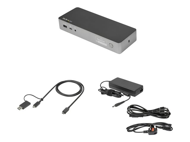 Produktbeskrivning StarTech.com Universell dockningsstation för bärbara datorer med två 4K-bildskärmar - USB-C/USB 3.0 - 100W PD - dockningsstation - USB-C - 2 x HDMI, 2 x DP - 1GbE Typ av produkt Dockningsstation Dockningsgränssnitt USB-C Videogränssnitt 2 x HDMI, 2 x DP Dimensioner (BxDxH) 22 cm x 8 cm x 3 cm Vikt 280 g Färg Svart, rymdgrå Lokalisering Storbritannien, Europa Nätverk Gigabit Ethernet Strömtillförsel Strömadapter AC 120/230 V 170 Watt Effekt Tillverkarens garanti 3 års garanti -
