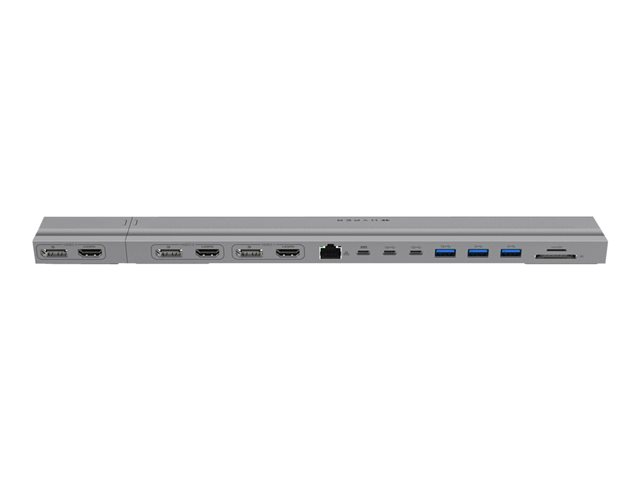 Produktbeskrivning HyperDrive - dockningsstation - USB-C x 2 - 3 x HDMI, 3 x DP - 1GbE Typ av produkt Dockningsstation Dockningsgränssnitt USB-C x 2 Videogränssnitt 3 x HDMI, 3 x DP Dimensioner (BxDxH) 34.95 cm x 5.2 cm x 1.65 cm Vikt 300 g Färg Silver Nätverk Gigabit Ethernet Tillverkarens garanti 2 års garanti -