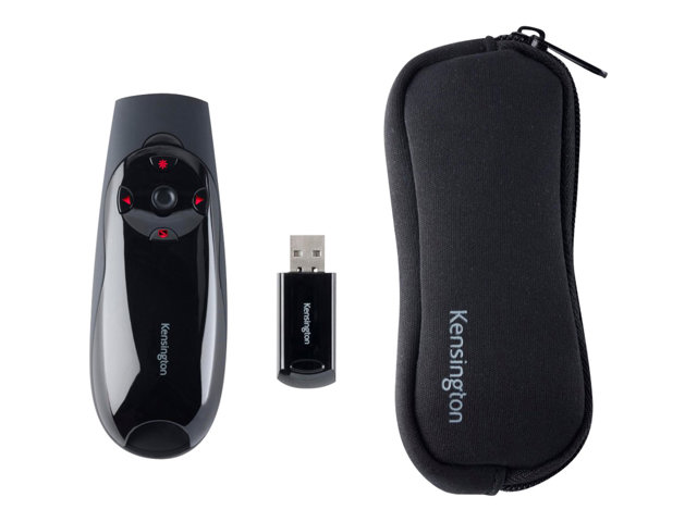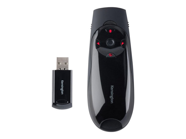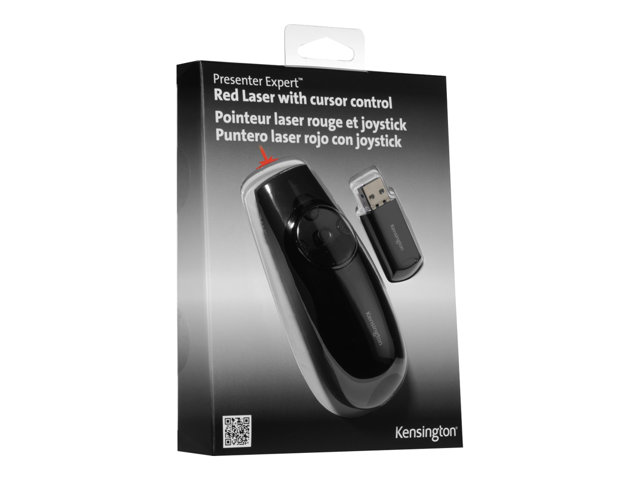 Produktbeskrivning Kensington Presenter Expert Red Laser with Cursor Control presentationsfjärrkontroll - svart Typ av enhet Presentationsfjärrkontroll Färg Svart Lokalisering Europa Anslutningsteknologi Radio Max arbetsavstånd 50 m Batteri Batteri för pekenhet -