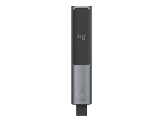 Produktbeskrivning Logitech Spotlight Plus presentationsfjärrkontroll - skiffer Typ av enhet Presentationsfjärrkontroll Färg Skiffer Dimensioner (BxDxH) 2.81 cm x 1.21 cm x 13.13 cm Vikt 49.2 g Enheter som stöds Notebook, PC Trådlös teknik Bluetooth, 2.4 GHz Antal knappar 3 knappar Max arbetsavstånd 30 m Batteri Laddningsbart - litiumpolymer Tillverkarens garanti 3 års garanti -