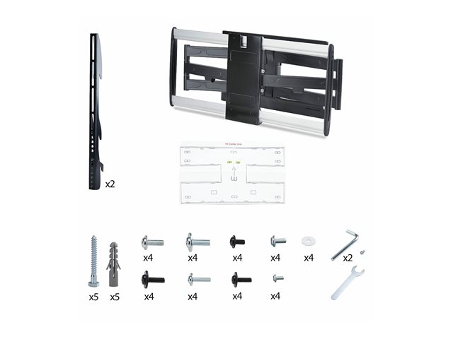 Produktbeskrivning StarTech.com monteringssats - artikulerande - för platt panel - low profile,VESA 600x400,45Kg - svart, silver - TAA-kompatibel Typ av produkt Monteringssats (artikulerande) - väggmonterbar Monteringskomponenter Väggfäste, 2 vertikala fästen Dimensioner (BxDxH) 48 cm x 73 cm x 4 cm Justerbart djup 4-60 cm Lutning -12° till 2° Rotation -2° till 2° Svängtapp -60° till 60° Justeringar Lutning, rotation, rotation, vridstift Vikt 7.3 kg Rekommenderad användning Platt panel Rekommenderad TV-storlek 32"-65" VESA-infästningsgränssnitt 200 x 100 mm, 200 x 200 mm, 200 x 300 mm, 200 x 400 mm, 300 x 200 mm, 300 x 300 mm, 400 x 200 mm, 400 x 300 mm, 400 x 400 mm, 500 x 300 mm, 600 x 300 mm, 600 x 400 mm Maxlast 45 kg Material Aluminium, stål Färg Svart, silver TAA-kompatibel Ja Förpackningens innehåll 2 st. lodräta fästskruvar, 4 brickor, 5 skruvar för väggmontering, 5 x betongankare, insexnyckel (5 mm), monteringsmall, skiftnyckel (10 mm), 4 st. skruvar (M4 x 12 mm), 4 st. skruvar (M4 x 18 mm), 4 st. skruvar (M5 x 12 mm), 4 st. skruvar (M6 x 12 mm), 4 st. skruvar (M6 x 18 mm), 4 st. skruvar (M8 x 12 mm), 4 st. skruvar (M8 x 18 mm), 4 st. skruvar (M8 x 25 mm) Tillverkarens garanti 5 års garanti -