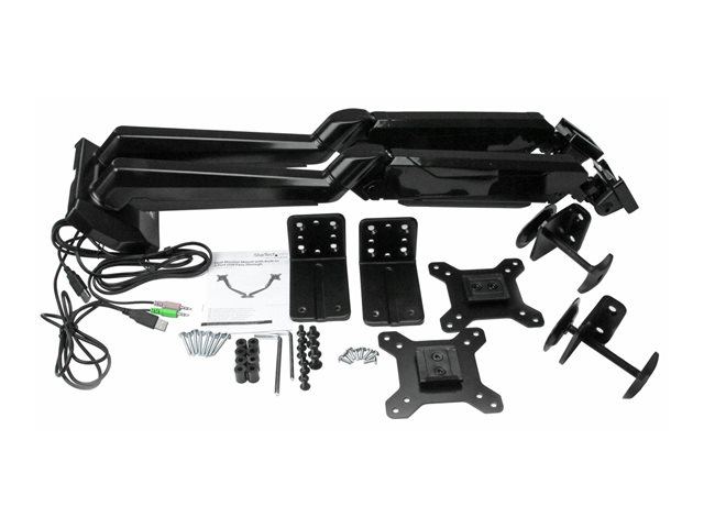 Produktbeskrivning StarTech.com Skrivbordsmonterad dubbel monitorarm - ledad i alla riktningar monteringssats - justerbar arm - för LCD-display - svart Typ av produkt Monteringssats (justerbar arm) - disk-monteringsbar Dimensioner (BxDxH) 1.1 m x 1.4 cm x 45 cm Lutning -90° till 85° Rotation 360° Svängtapp 180° Justeringar Höjd, panorering, lutning Vikt 6.1 kg Rekommenderad användning LCD-display Rekommenderad TV-storlek 12"-32" VESA-infästningsgränssnitt 100 x 100 mm, 75 x 75 mm Maxlast 8 kg Material Aluminium Färg Svart Förpackningens innehåll 2 x VESA skärmfästen, 8 x M4x12-skruvar, 8 x M4x30-skruvar, 8 x plastbrickor, M4 insexnyckel, M5 insexnyckel, 8 x M6 x 12 skruvar, 4 x M8x12 mm skruvar Tillverkarens garanti 2 års garanti Designat för P/N: ACCSMNT, DK30A2DH, DK30C2DAGPD, DK30C2HAGPD, PXT101YUK, TB3DK2DPM2, TB3DK2DPPD, USB3SDOCKDD, USB3SDOCKHD, USB3SDOCKHDV -