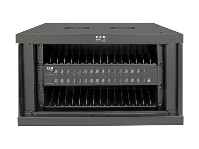 Eaton Tripp Lite Series 32-Device USB Charging Station Cabinet with Sync for Smartphones, Wall Mount and Desktop Options, 230V, BS1363 to C13 Plug, Black