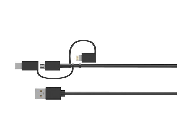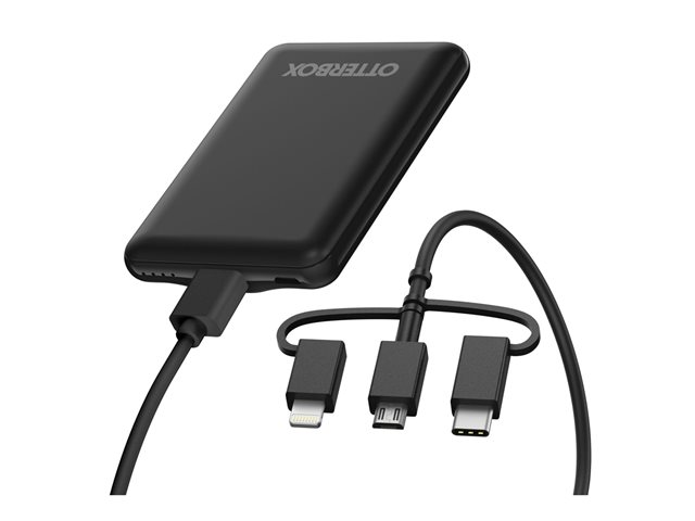 Strömförsörjningsbank - 5000 mAh - 10.5 Watt - 2.1 A - Apple Fast Charge, FC, USB BC 1.2 (USB) - på kabel: Lightning/Micro-USB/USB-C - svart