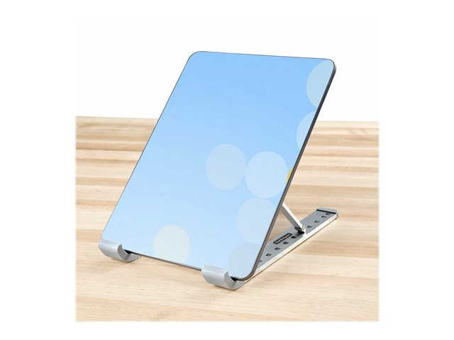 Produktbeskrivning StarTech.com Foldable Laptop Riser Stand, Portable Height Adjustable Ergonomic Laptop Stand, Ventilated Aluminum Frame Supports 22lb (10Kg), Tilt/Raised/Angled Laptop/Tablet Stand, Collapsible Design - ställ för bärbar dator Produkttyp Ställ för bärbar dator Placering/montering På bord Förpackningens innehåll Stigare för bärbar dator, bärpåse Färg Silver Produktmaterial Aluminium Vikt 341 g Notebook-kompatibilitet 15.6" Datorstorlekar som stöds Upp till 15,6" / upp till 39,6 cm Egenskaper Multipel visningsvinkel, ergonomisk hållare lutningsjustering 15 - 84 grader, låg vikt, justerbar vinkel (9 lägen), justerbar bredd, antihalkdynor, bärbar Tillverkarens garanti 5 års garanti -