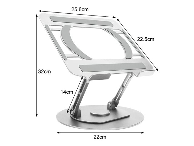 Produktbeskrivning Vision VLM-TL - ställ för bärbar dator - roterande bord Produkttyp Ställ för bärbar dator - roterande bord Färg Silver Produktmaterial Bladmetall Dimensioner (BxDxH) 25.8 cm x 22 cm x 32 cm Vikt 890 g Egenskaper 360 graders rotation, halkfri, drejskiva, öppen ventilationskonstruktion Tillverkarens garanti Begränsad livstidsgaranti -