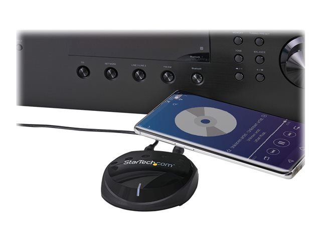 Produktbeskrivning StarTech.com Bluetooth 5.0 Audio Receiver with NFC, Bluetooth Wireless Audio Adapter BT 5.0, 66ft (20m) Range, 3.5mm/RCA or Digital Toslink/SPDIF Optical Output, Lossless HiFi Wolfson DAC - For Stereos/Speakers - trådlös Bluetooth-ljudmottagare Typ av produkt Trådlös Bluetooth-ljudmottagare Trådlöst gränssnitt Bluetooth, NFC Förpacknings innehåll Adapter för växelström, ljudkabel, 3,5 mm till RCAx2-adapter, trådlös Bluetooth-ljudmottagare Produktmaterial Plast Dimensioner (BxDxH) 8.4 cm x 2.6 cm x 7.7 cm Färg Svart Tillverkarens garanti 2 års garanti -