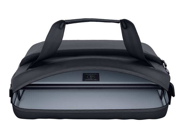 Produktbeskrivning Dell EcoLoop Pro Slim Briefcase 15 - notebook-väska Produkttyp Notebook-väska Färg Svart Produktmaterial Polyester, 100 % återvunnen plast, skumgummi Dimensioner (BxDxH) 39 cm x 9 cm x 29 cm Vikt 490 g Notebook-kompatibilitet 15.6" Datorstorlekar som stöds Upp till 15,6" / upp till 39,6 cm Egenskaper Väderbeständig, smutsavstötande, vadderad manschett, anpassat för säkerhetskontrollen vid flygning, reflekterande accent Bärrem Grepphandtag, justerbar axelrem, rem till rullväska Tillverkarens garanti 3 års garanti -