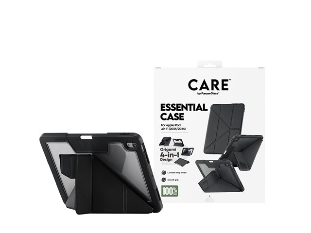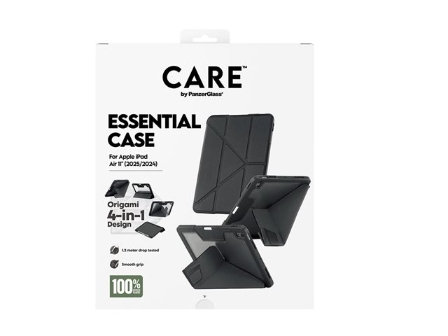 Produktbeskrivning CARE by PanzerGlass - vikbart fodral för surfplatta Typ av produkt Vikbart fodral för surfplatta Material Termoplastisk polyuretan (TPU) Färg Svart Återvunnet produktinnehåll 100 % Designat för Apple 11-inch iPad Air (M2, M3) -