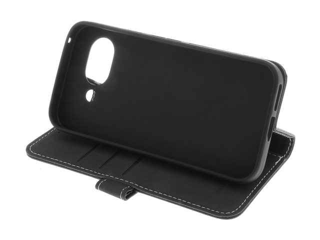 Produktbeskrivning Insmat Exclusive - vikbart fodral för mobiltelefon Typ av produkt Vikbart fodral för mobiltelefon Material Läder, termoplastisk polyuretan (TPU), galvaniserad bronsring, bomullssömmar Färg Svart Designat för Google Pixel 10a -