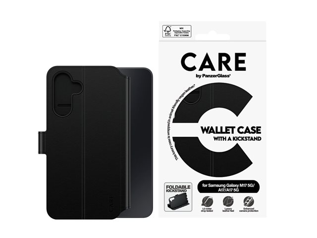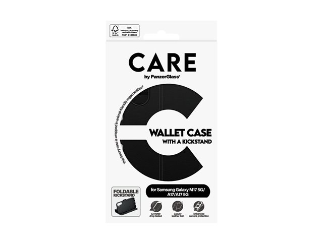 Produktbeskrivning CARE by PanzerGlass - vikbart fodral för mobiltelefon Typ av produkt Vikbart fodral för mobiltelefon Dimensioner (BxDxH) 9.4 cm x 2.2 cm x 16.9 cm Vikt 93 g Material Konstläder Designat för Samsung Galaxy A17, A17 5G -