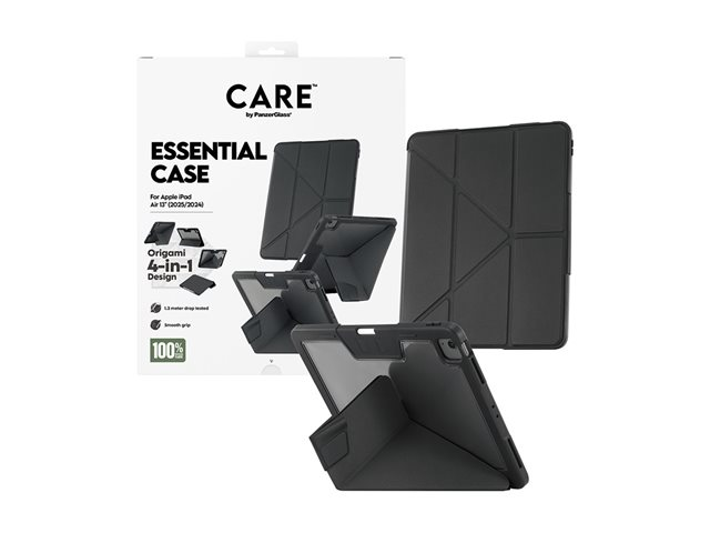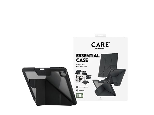 Produktbeskrivning CARE by PanzerGlass - vikbart fodral för surfplatta Typ av produkt Vikbart fodral för surfplatta Dimensioner (BxDxH) 23 cm x 1.3 cm x 28.8 cm Vikt 460 g Material Termoplastisk polyuretan (TPU), polykarbonat, konstläder Färg Svart Återvunnet produktinnehåll 100 % Designat för Apple 13-inch iPad Air M3 Wi-Fi, M3 Wi-Fi + Cellular -