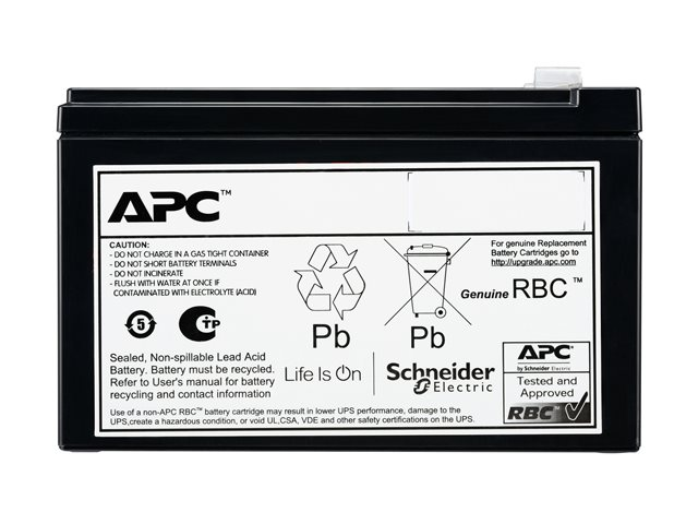 Produktbeskrivning APC - UPS-batteri - VRLA - 9 Ah Typ av enhet UPS-batteri Stativstorlek 0U Vikt 15 kg Batteri Ventilstyrd blysyra (VRLA) - 9 Ah Antal batterier 6 Dimensioner (BxDxH) 15.09 cm x 9.86 cm x 6.48 cm Tillverkarens garanti 2 års garanti -