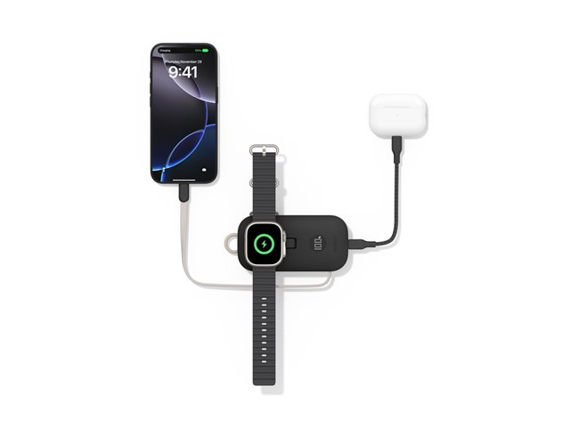 Power bank - med apple watch-laddare - 10000 mAh - 45 Watt - Fast Charge (2 x USB-C) - svart