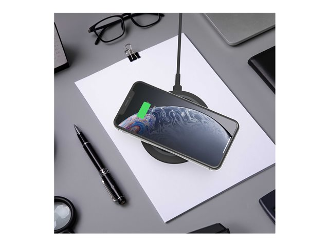 Produktbeskrivning Insmat trådlös laddningsplatta - 15 Watt Typ av produkt Trådlös laddningsplatta Färg Svart Nätspänning 5 / 9 / 12 V Snabbladdningsteknik Fast Charge Standarder för trådlös laddning Qi Effekt 15 Watt -