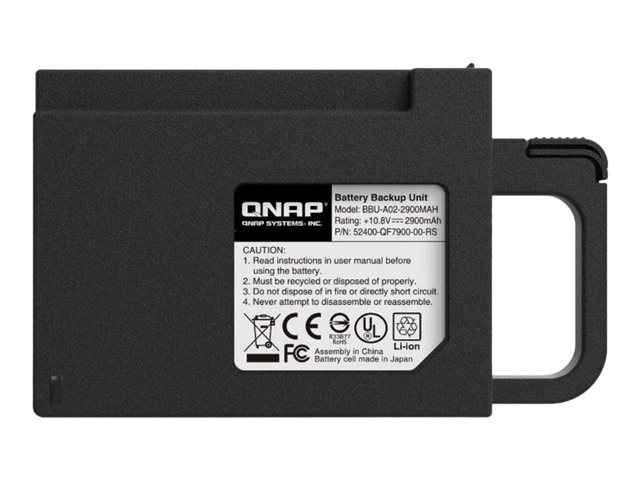 Produktbeskrivning QNAP BBU-A02-2900MAH - reservbatteri - Li-Ion - 2200 mAh Typ av enhet Reservbatteri Vikt 218 g Batteri Litiumjon - 2200 mAh Dimensioner (BxDxH) 7.9 cm x 3.2 cm x 11.8 cm Designat för QNAP ES2486dc -