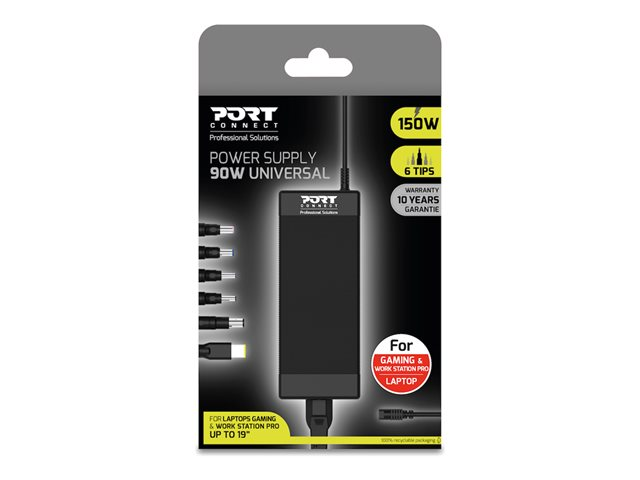 Produktbeskrivning PORT Connect - strömadapter - 150 Watt Typ av enhet Strömadapter - extern Vikt 686 g Inspänning AC 100-240 V Utspänning 19.5 V Effektkapacitet 150 Watt Inkluderade tillbehör 6 kontaktstift för bärbar dator Dimensioner (BxDxH) 6.3 cm x 4.2 cm x 16.5 cm Tillverkarens garanti 10 års garanti -