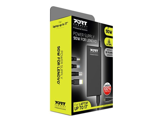 Produktbeskrivning PORT Connect - strömadapter - 90 Watt Typ av enhet Strömadapter - extern Vikt 468 g Lokalisering Storbritannien Inspänning AC 100-240 V Utspänning 19 V Effektkapacitet 90 Watt Inkluderade tillbehör 4 kontaktstift för bärbar dator Dimensioner (BxDxH) 12.7 cm x 5 cm x 3.05 cm Tillverkarens garanti 10 års garanti -