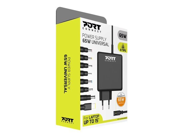 Produktbeskrivning PORT Connect - strömadapter - universell - 65 Watt Typ av enhet Strömadapter - extern Vikt 250 g Lokalisering Europa Inspänning AC 100-240 V Utspänning 19.5 V Effektkapacitet 65 Watt Inmatningsanslutningar Eurokontakt (ström CEE 7/16) Inkluderade tillbehör 8 kontaktstift för bärbar dator Dimensioner (BxDxH) 7.5 cm x 3 cm x 7.5 cm Tillverkarens garanti 2 års garanti -