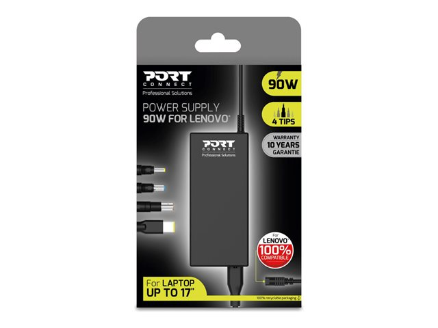 Produktbeskrivning PORT Connect Universal Power Supply - strömadapter - 90 Watt Typ av enhet Strömadapter - extern Vikt 468 g Inspänning AC 100-240 V Utspänning 19 V Effektkapacitet 90 Watt Färg Svart Dimensioner (BxDxH) 12.7 cm x 5 cm x 3.05 cm Tillverkarens garanti 10 års garanti -