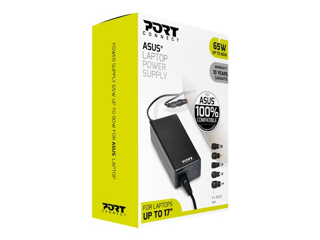 Produktbeskrivning PORT - strömadapter - 65 Watt Typ av enhet Strömadapter - extern Vikt 340 g Lokalisering Europa Inspänning AC 100-240 V Utspänning 19.5 V Effektkapacitet 65 Watt Inkluderade tillbehör 5 notebook power tips (for Asus) Dimensioner (BxDxH) 11.3 cm x 5 cm x 3 cm Tillverkarens garanti 10 års garanti -