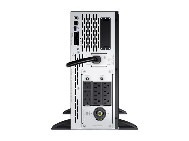 1 x ström NEMA L5-30RBatteri Bly-syra Batterimodell Intern Antal batterier 1 Driftstid (upp till) 6 min på full laddning Nätverk RS-232, USB Inkluderade tillbehör Tornställ Färg Svart Typ av prissättning APC Take-Back Dimensioner (BxDxH) 48.3 cm x 43.2 cm x 17.8 cm Tillverkarens garanti 3 års garanti -