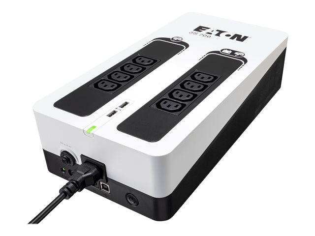 Produktbeskrivning Eaton 3S 700 - UPS - 420 Watt - 700 VA Typ av enhet UPS - extern Vikt 4 kg Ingångskablage 1-fas Inspänning AC 220-240 V Utspänning AC 220/230/240 V Effektkapacitet 420 Watt / 700 VA Inmatningsanslutningar 1 x ström IEC 60320 C14 Utdatakontakter 4 x power IEC 60320 C13 (spänningsutjämnare)